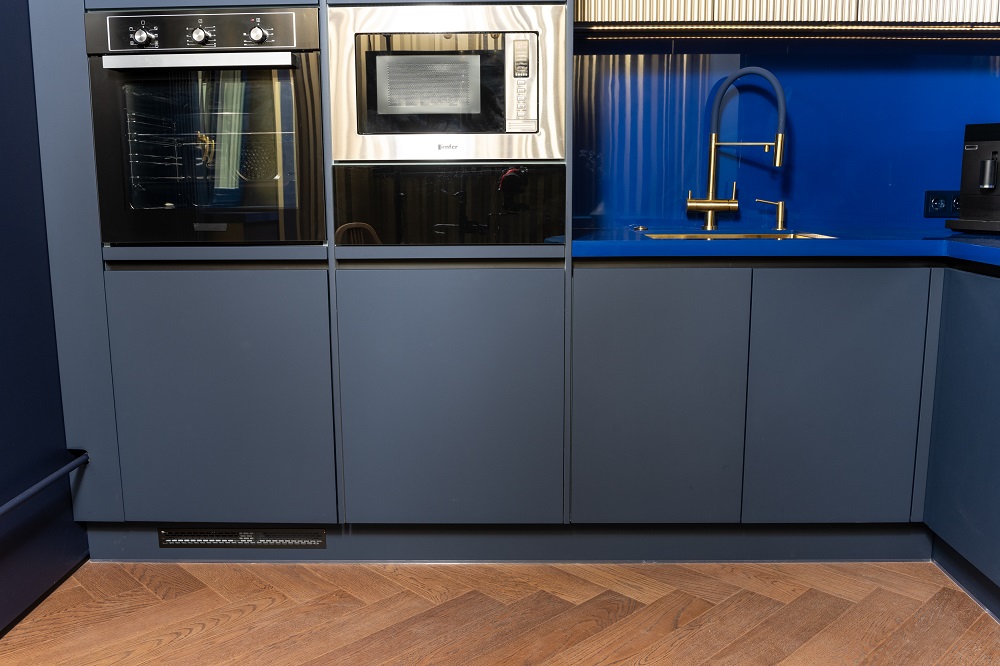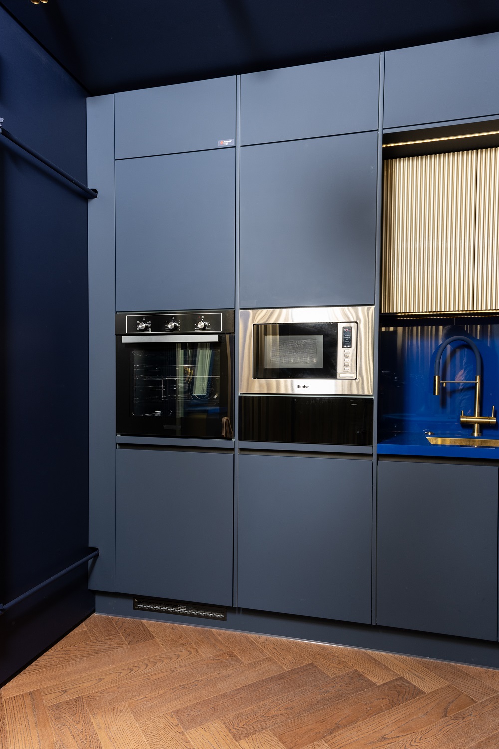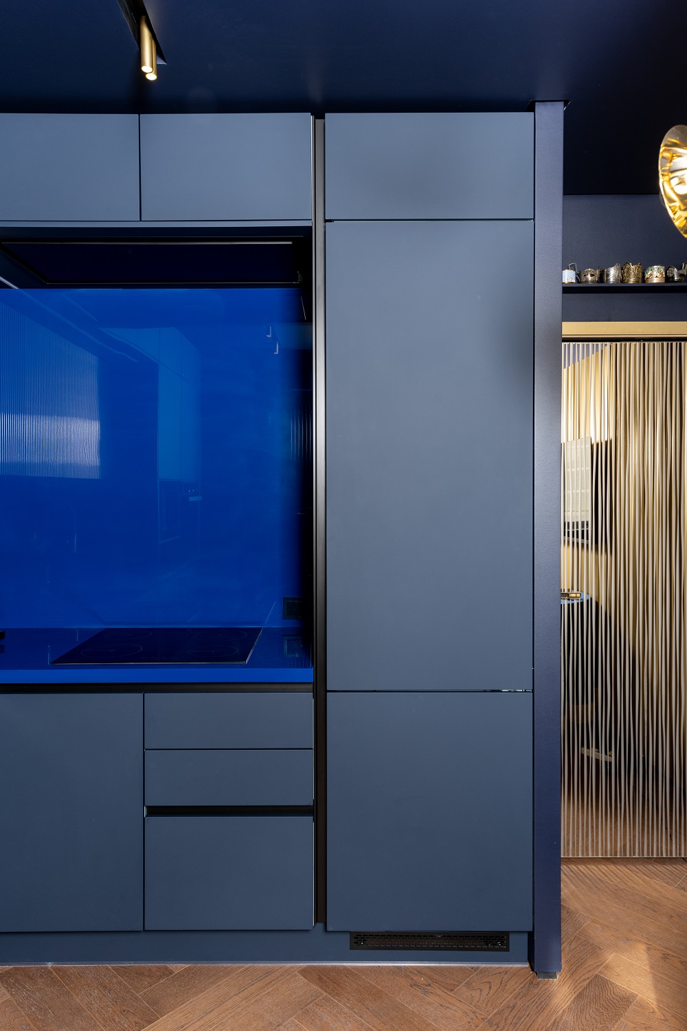Дизайнер Игорь Куркин вытащил пространство кухни из «оркестровой ямы» под свет софитов и богемный лоск с красивым полом из натурального дерева, на который можно смело разливать воду (даже кипяток).